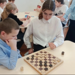 На переменах в школе развернулась настоящая игротека «Любимые игры наших родителей». Вместо того чтобы «зависать» в телефонах, ребята с азартом пробовали себя в различных классических забавах («Цепи кованые», «Горячая картошка «, «Жмурки», «Рыбак и рыбки»), сражались в настольные игры («Лото», «Шашки», «Крестики-нолики», «Бродилки», «Дженга»).