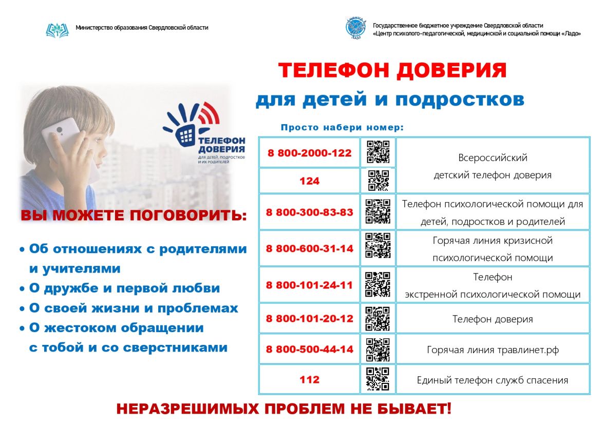 Телефон доверия для детей, подростков и их родителей 88002000122