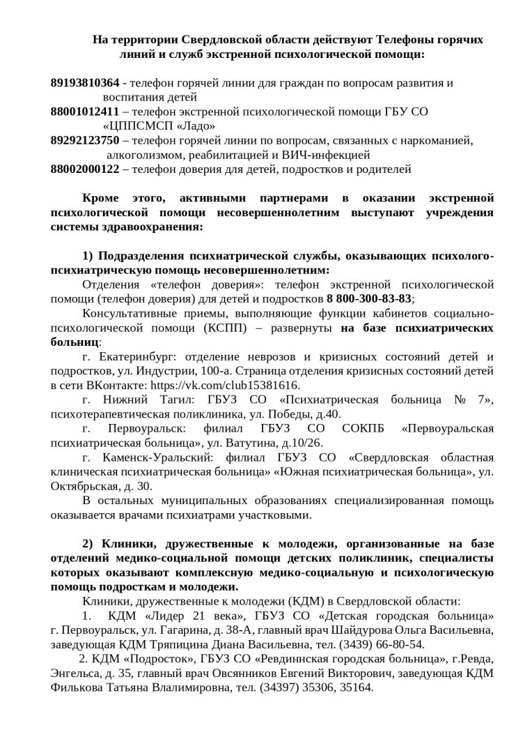 ТЕЛЕФОН ДОВЕРИЯ ДЛЯ ДЕТЕЙ И ПОДРОСТКОВ