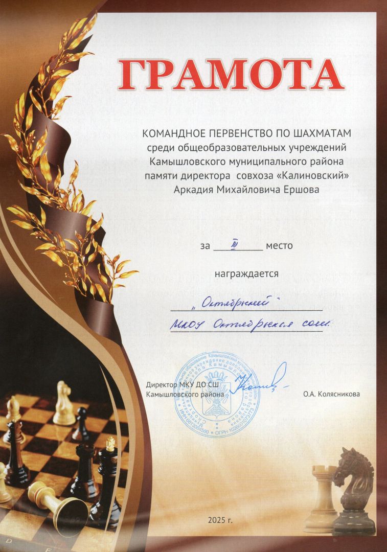 03.11.25. КОМАНДНОЕ И ЛИЧНОЕ ПЕРВЕНСТВО ПО ШАХМАТАМ СРЕДИ ОУ КАМЫШЛОВСКОГО МР