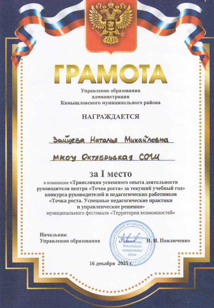 16.12.25. МУНИЦИПАЛЬНЫЙ КОНКУРС РУКОВОДИТЕЛЕЙ И ПЕДАГОГИЧЕСКИХ РАБОТНИКОВ ЦЕНТРОВ «ТОЧКА РОСТА»