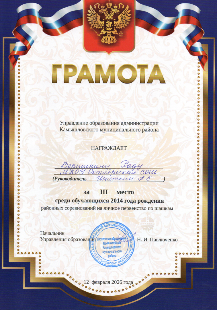 12.02.26. СОРЕВНОВАНИЯ НА ЛИЧНОЕ ПЕРВЕНСТВО ПО ШАШКАМ СРЕДИ ОБУЧАЮЩИХСЯ ШКОЛ КАМЫШЛОВСКОГО РАЙОНА